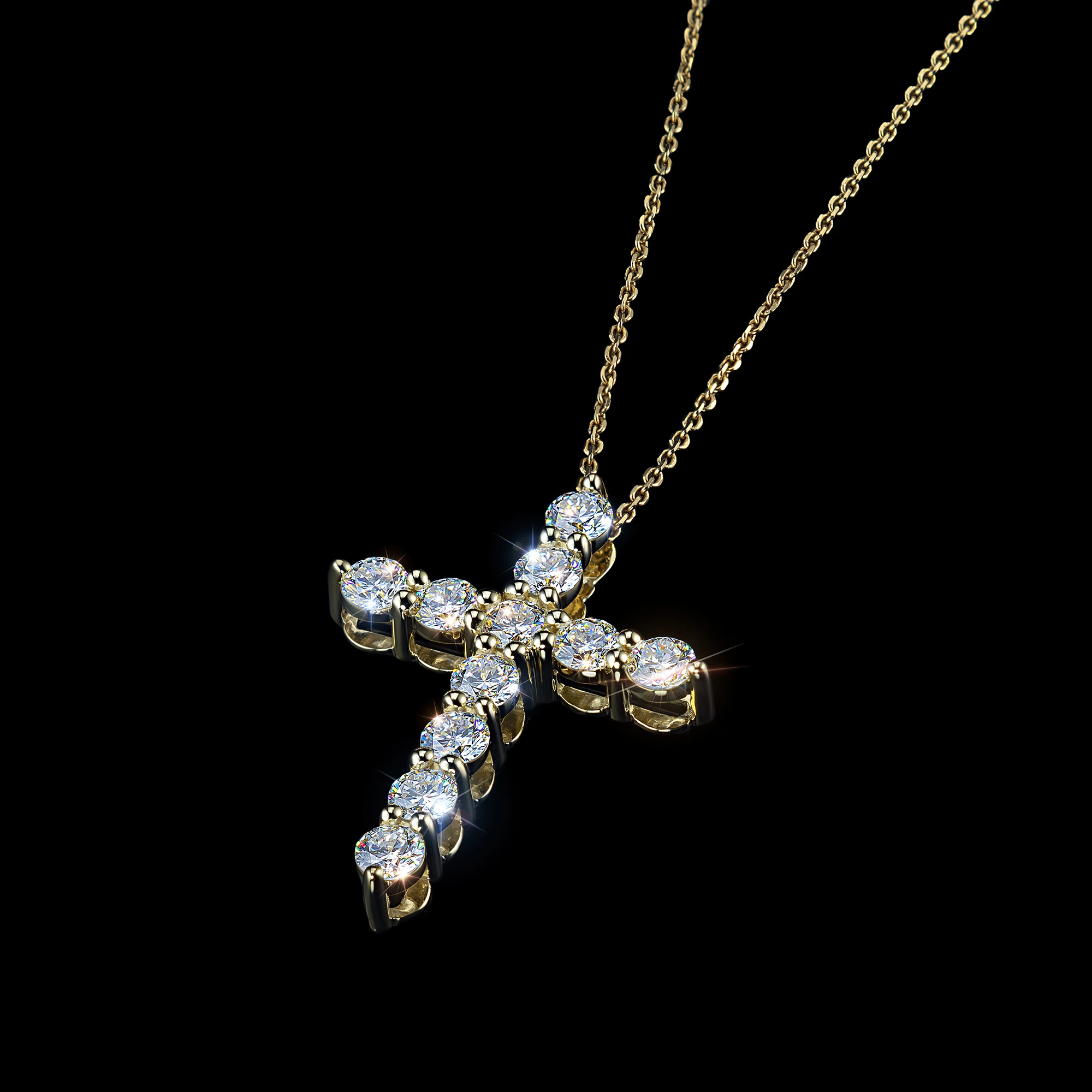 В этом элегантном исполнении особенно выделяется дизайн в форме крестика, украшенного сверкающими бриллиантами. Подвеска крестик с бриллиантами отличается безупречным качеством исполнения и великолепным блеском, который не оставит равнодушным никого.