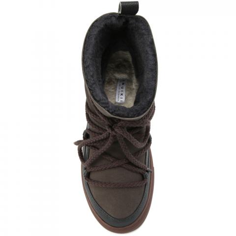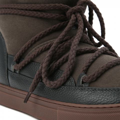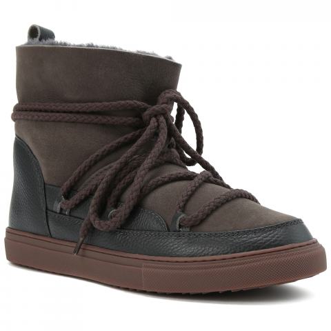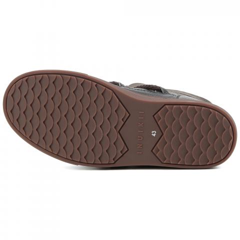 Ботинки Inuikii в сером цвете. Знаменитые «Classic Sneaker» можно носить как в повседневном, так и в деловом стиле, они будут держать ваши ноги в тепле каждый день. Пережив все тенденции и благодаря высококачественным материалам, эти ботинки прослужат вам много зим. Верх выполнен из натуральной замши и кожи с водоотталкивающими и снегонепроницаемыми свойствами. Подкладка и стелька - из 100% овчины. Подошва из противоскользящей экорезины обеспечивает практичность. Шнуровка в цвет.