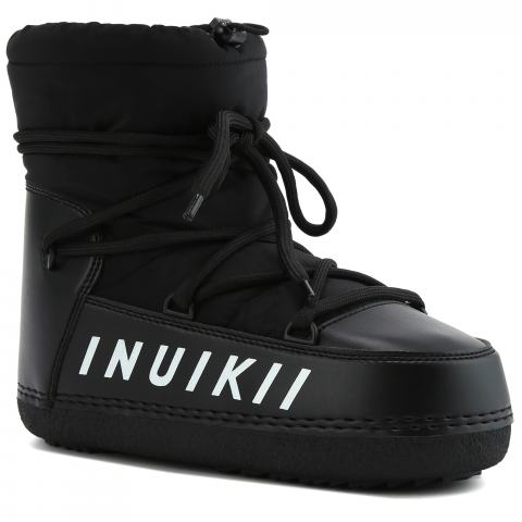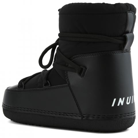Чёрные ботинки с текстильным верхом от Inuikii . Модель сочетает в себе функциональность и городскую современность. Фирменный стиль бренда подчеркнут деталями, такими как надпись в виде логотипа, длинная шнуровка и высокая подошва из резины. Внутри очень теплые подкладка и стелька из натуральной овчины. Для дополнительной защиты от снега сверху предусмотрен шнурок-кулиска с замком. Пара, идеально подходящая к любым погодным условиям, как в городе, так и на природе.