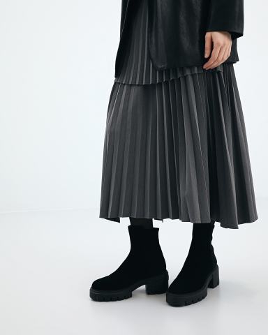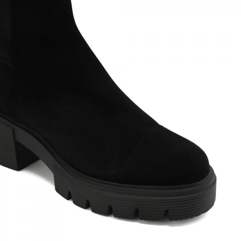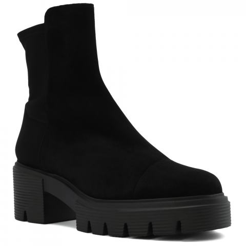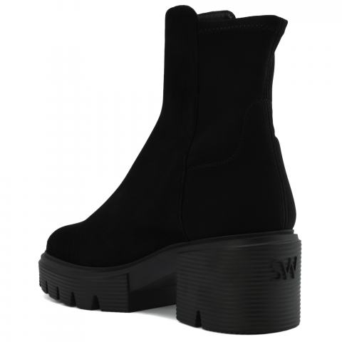 Ботильоны из замши в чёрном цвете Stuart Weitzman. Ботинки из замшевой кожи идеально поддержат городской стиль. Они имеют высокую 70-миллиметровую подошву с выступами, которая предлагает смелый новый взгляд на тренды. Их лаконичный дизайн позволяет носить их с чем угодно. Подкладка и стелька выполнены из натуральной кожи.