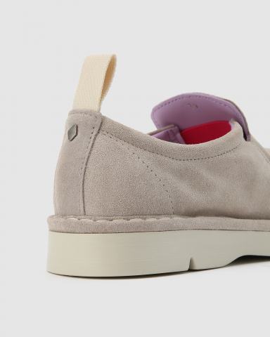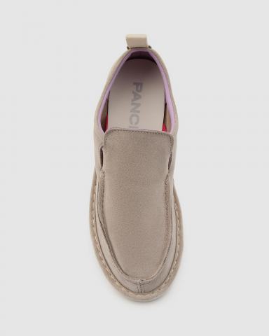 Туфли Panchic из замши в сером цвете. Пара из новой летней коллекции бренда подойдёт к повседневным образам в стиле casual. Верх из мягкой замши, практичная резиновая подошва, петелька сзади для удобного надевания. Подкладка выполнена из текстильной ткани, а стелька - из качественной эко кожи.