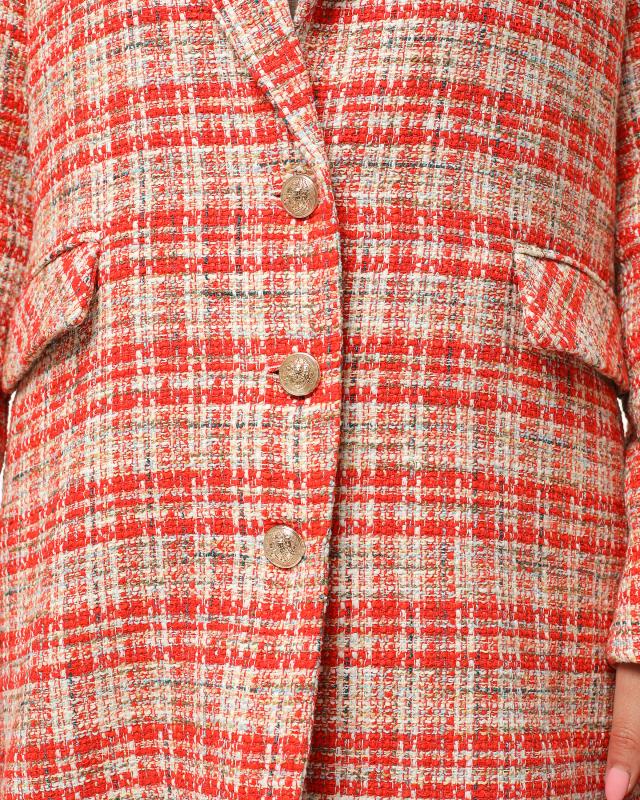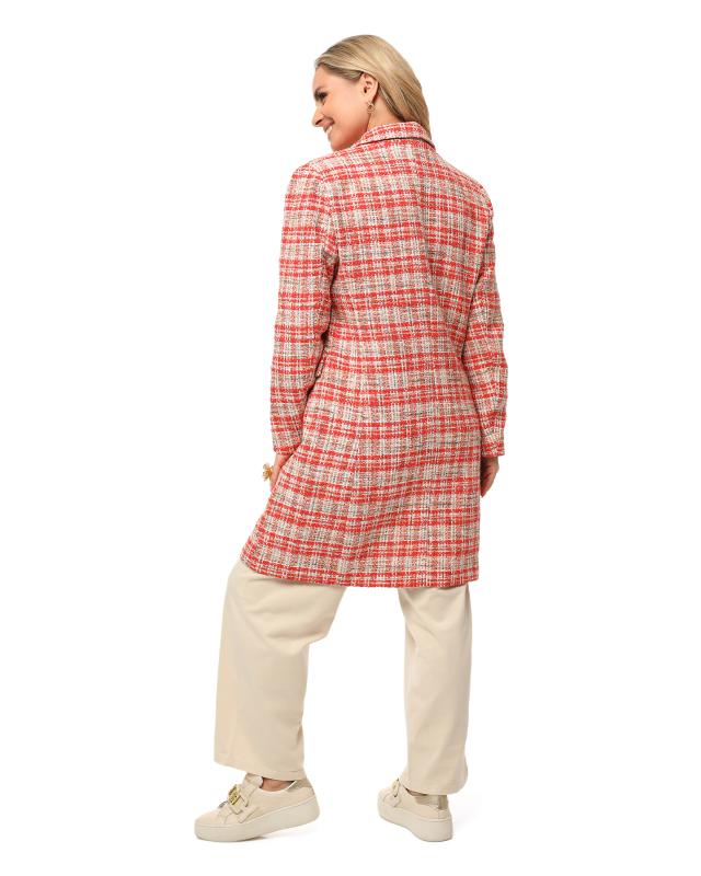 Однобортное пальто с английским воротником и классическим принтом в клетку. Боковые карманы с клапанами – элегантная и практичная деталь.