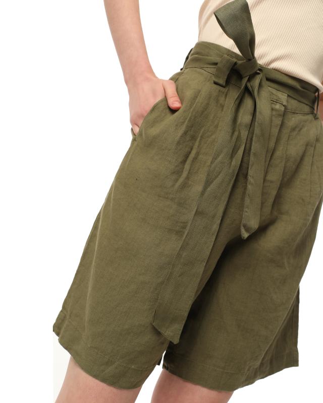 Как купить Льняные шорты с боковыми карманами и поясом?