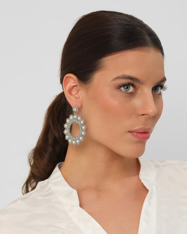 Крупные серьги с нежным жемчугом и сверкающими кристаллами – восхитительное украшение, которое станет завершающим штрихом торжественного образа. Из коллекции итальянского бренда Lagriffe Bijoux.
