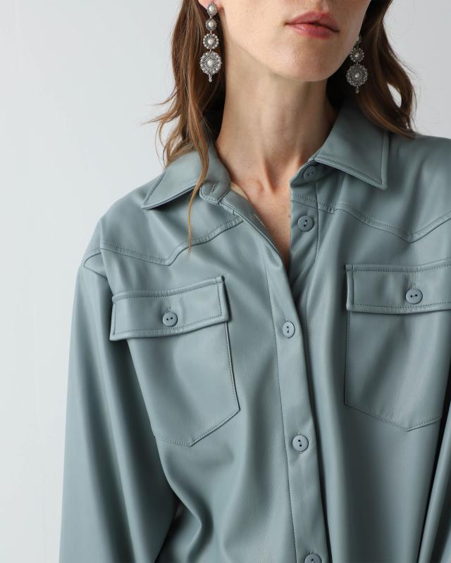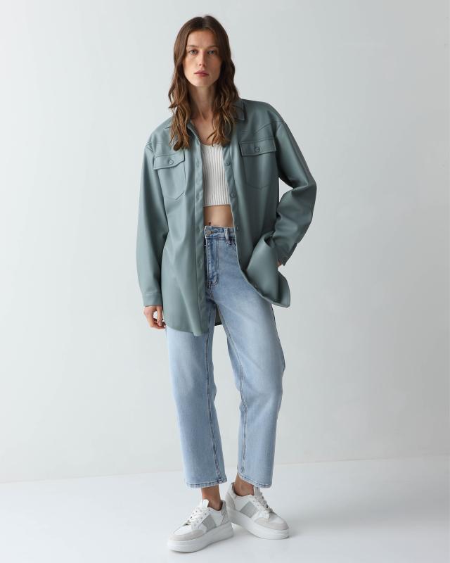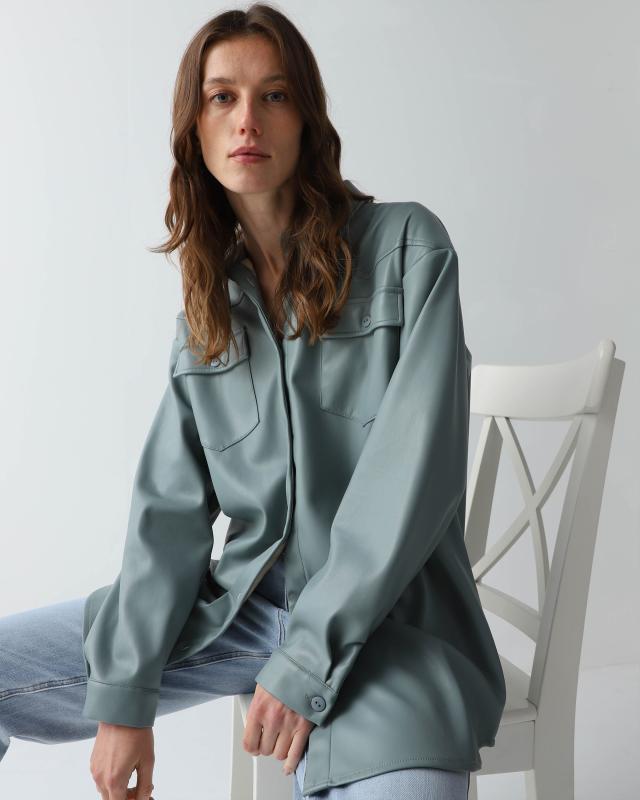 Стильная кожаная рубашка от бренда Nominee – идеальный вариант для стильных и современных женщин. Удлиненная посадка и свободный рубашечный крой подойдут на любую фигуру. Эту модель можно использовать как куртку и надевать поверх футболки или топа в прохладное время года.
