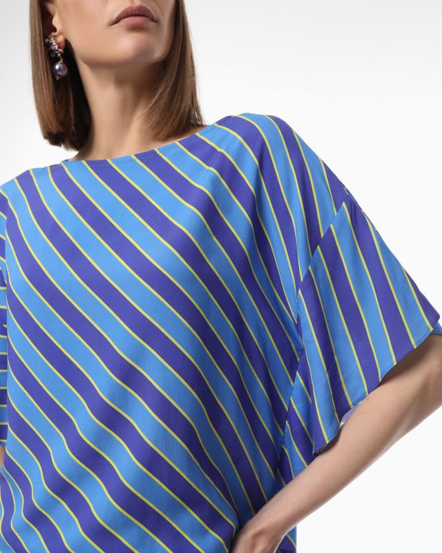 Блузка из 100% вискозы, от бренда Passegiata, имеет вырез лодочка и свободные рукава.
