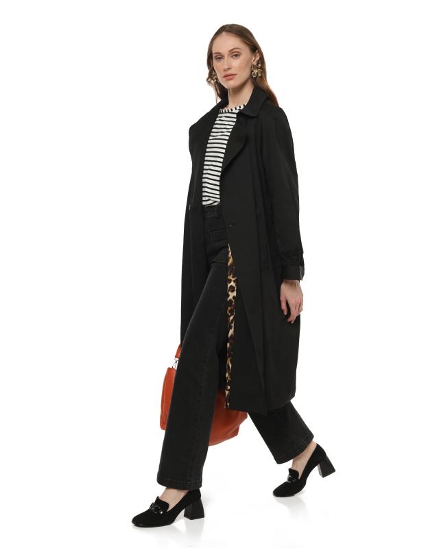 Двубортный тренч Felis от французского бренда La Petite Etoile – отличная покупка на межсезонье. Эта стильная верхняя одежда с отложным воротником выполнена из качественного водоотталкивающего материала. Чтобы ваш образ был женственным в комплект включен пояс в тон, которым можно подчеркнуть талию, формируя красивый силуэт. Представляя классическую модель, мастера марки не удержались и добавили изюминку в виде мягких складок на рукавах, создающих дополнительный объем. В коллекции La Petite Etoile можно найти два классических оттенка тренча: бежевый и черный. Перчинку изделию добавляет подкладка с активным леопардовым принтом.