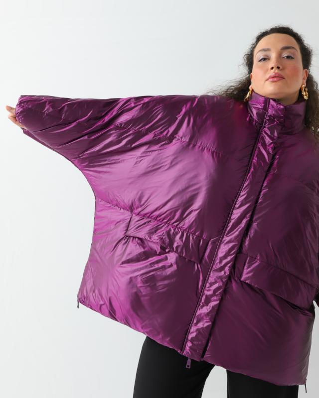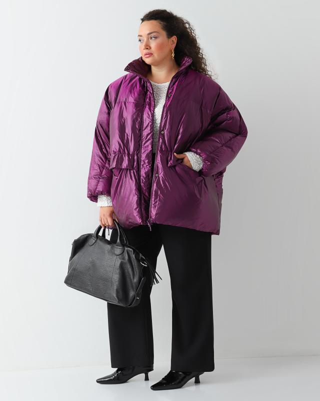 Эффектный стеганый оверсайз-пуховик – комфортная и теплая модель из коллекции бренда Mitica Luna. Широкая пройма позволяет комбинировать верхнюю одежду с объемными вещами без дискомфорта в рукавах. Уютный воротник-стойка, карманы с клапанами, застежка на двустороннюю молнию и ветровик на потайных кнопках защитят от снега и ветра. Во вместительные карманы удобно класть телефон, ключи или кошелек.