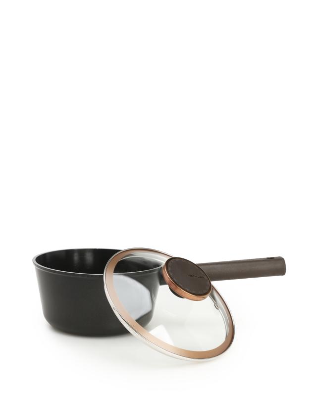 Посуда из коллекции Noblesse впечатляет благородным дизайном в стиле сдержанной роскоши: оправа крышки цвета розового золота, ручки с окантовкой из текстуры, похожей на кожу.