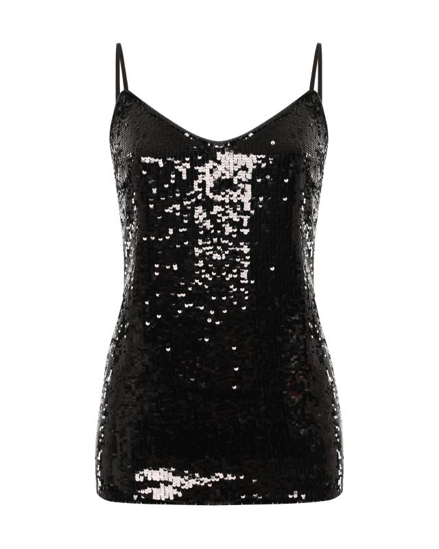 Топ со сплошным декором пайетками идеально дополнит любой образ – и повседневный, и вечерний. Бретели регулируются, что обеспечивает идеальную посадку. Все края обработаны. Модель представлена в трех стильных оттенках: насыщенные зеленый и лиловый и классический черный.