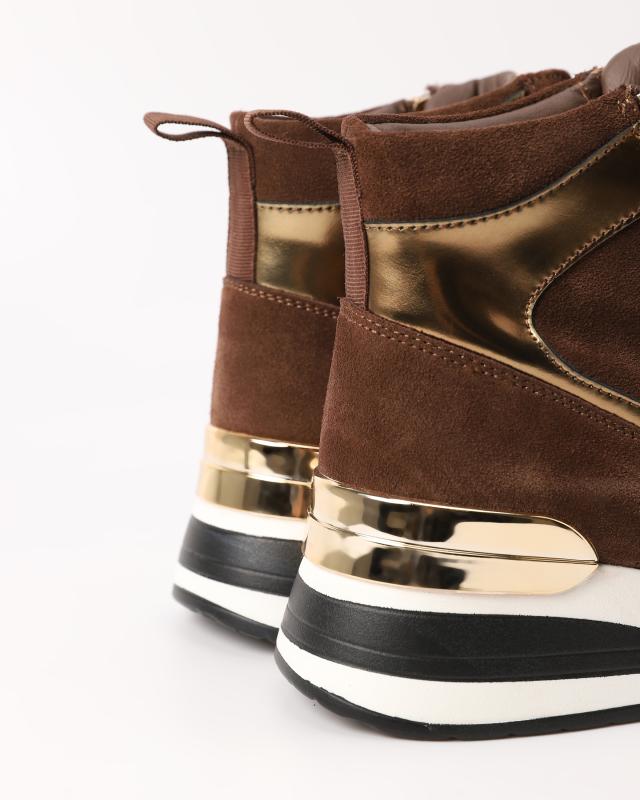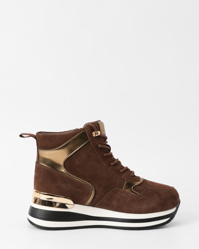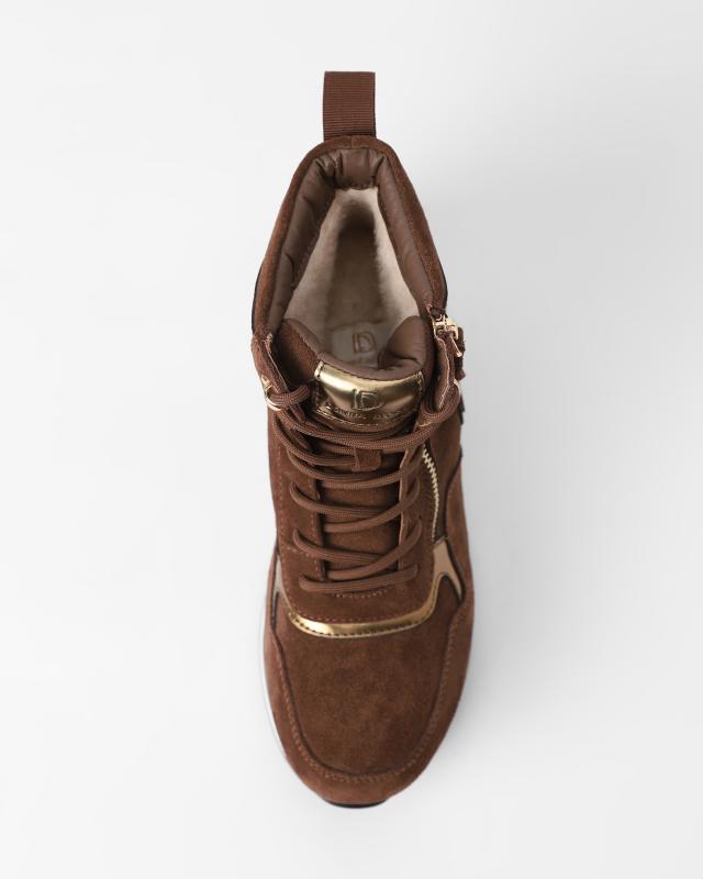 Теплые и комфортные ботинки на платформе из новой коллекции бренда Donna D'Oro удачно впишутся в повседневный образ. Для создания модели конструкторы выбрали стильную комбинацию материалов: натуральная замша, кожа и эффектные текстильные вставки. Шнуровку дополняет удобная боковая молния.