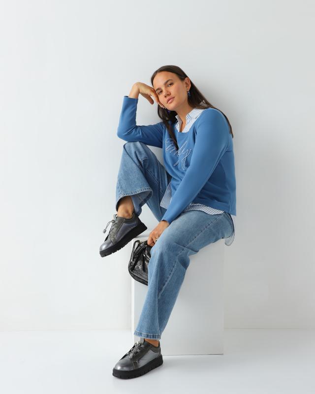 Свитшот прямого кроя, с рубашечными вставками, круглым вырезом, длинным рукавом и вышивкой-надписью SIMPLY.