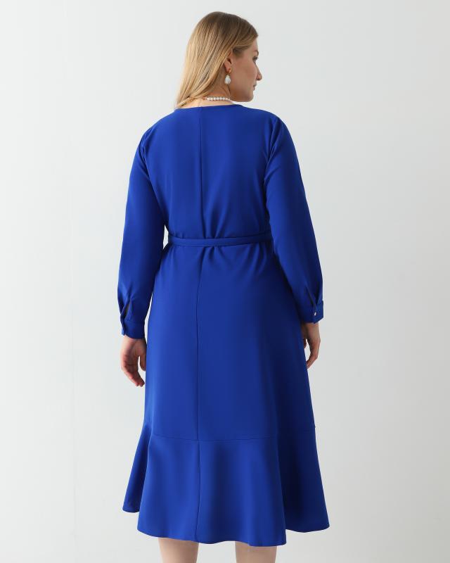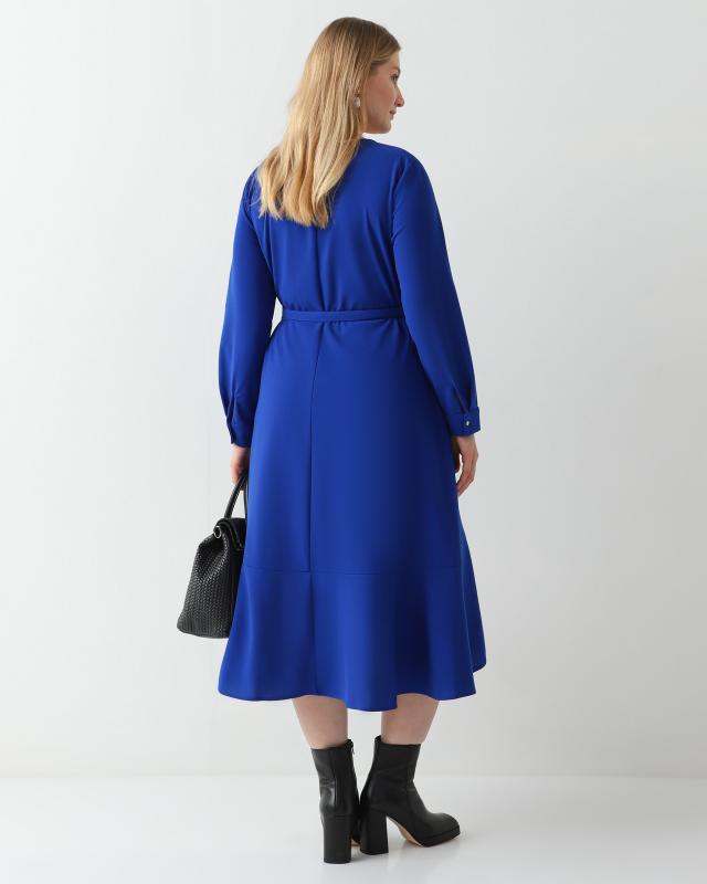 С миди-платьем из новой коллекции бренда Time-to-Dress мастера бренда обошлись максимально деликатно. Элегантному сапфировому оттенку дизайнеры противопоставили сложносочиненный крой с эффектом запаха. V-образный вырез акцентирует внимание на зоне декольте и подчеркивает изящество шеи, а оборка по низу добавляет легкую нотку игривости. Женственнее модель делают укороченные рукава, приоткрывающие хрупкие запястья. Для пошива изделия использовали струящуюся эластичную ткань, которая практически не мнется и легка в уходе. Универсальное платье с легкостью справится с ролью как дневного, так и вечернего наряда.