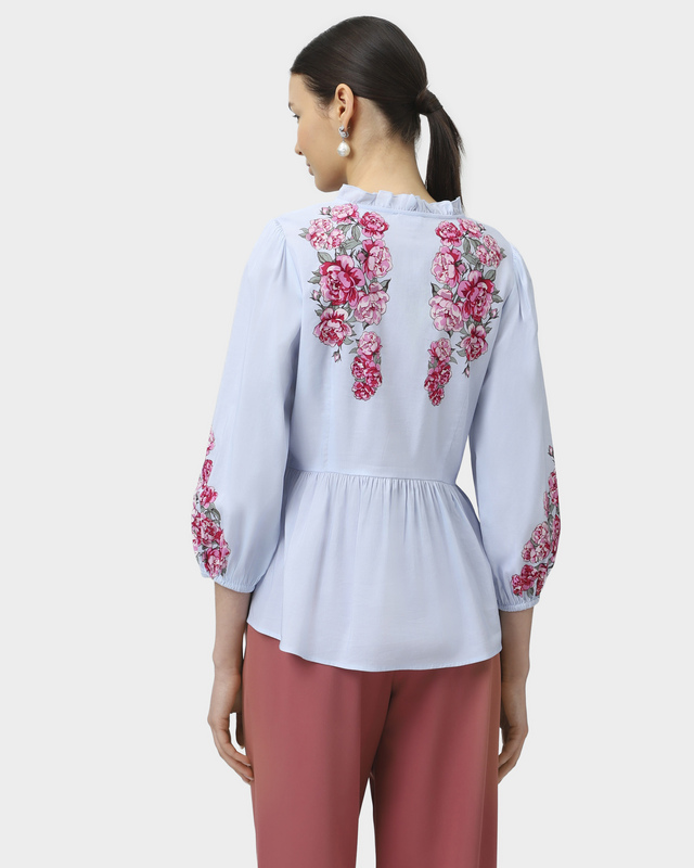 Как купить Блузка с баской и цветочным принтом из смеси вискозы и хлопка?