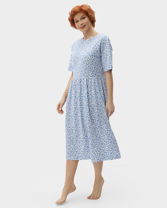 Домашнее платье из хлопка с растительным принтом
