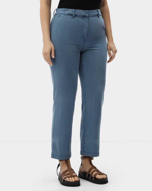 Брюки из коллекции Mitica Luna выполнены из высококачественной смеси тенсела и хлопка. Модель прямого кроя с завышенной талией дополнена широким поясом с эластичной вставкой. Винтажный эффект достигается с помощью техники stone wash на швах.