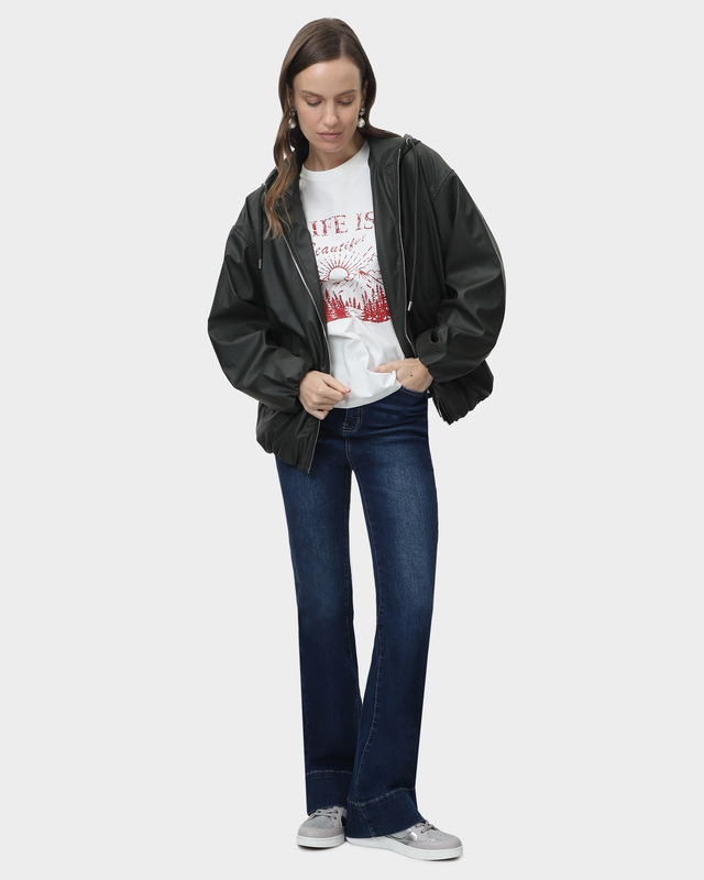Удлиненная стеганая куртка c утепленным капюшоном + футболка прямого кроя с принтом