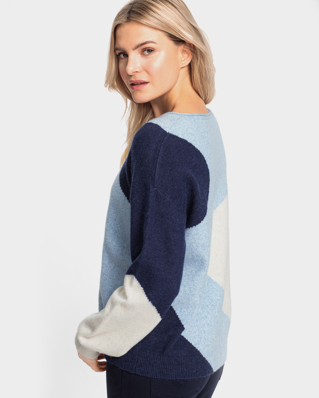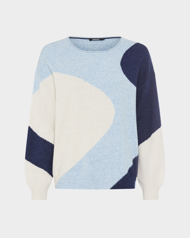 Пуловер Cora со спущенной линией плеч вошел в коллекцию Coast Vibes немецкого бренда Olsen. Модель изготовлена из мягкой вискозной пряжи We Care, которая включает в себя переработанный полиэстер, что свидетельствует о приверженности бренда актуальной экологической повестке. Приятный на ощупь трикотаж надолго сохраняет идеальный внешний вид и поддерживает оптимальную терморегуляцию. Слегка пышные рукава заканчиваются эластичными манжетами в рубчик. Свободный пуловер с круглым вырезом смотрится выразительно за счет крупного абстрактного узора.