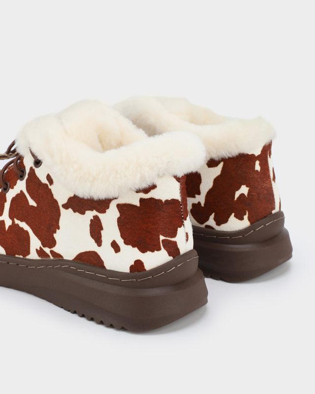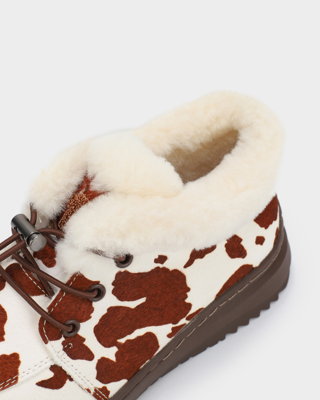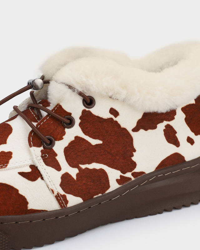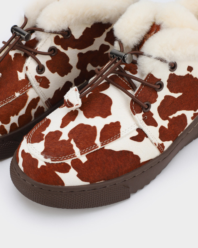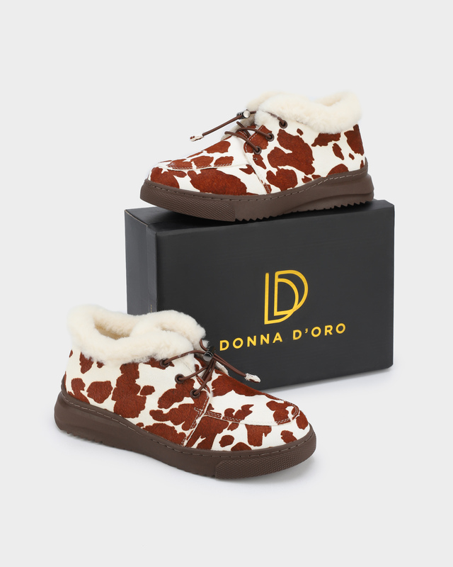 Полуботинки из натуральной замши от итальянского бренда Donna D'Oro. Пара в цвете мульти с фактурой под ворс пони. Опушка выполнена из натурального меха. Подкладка – искусственный мех средней плотности. Застежка на функциональные эластичные шнурки с фиксатором.