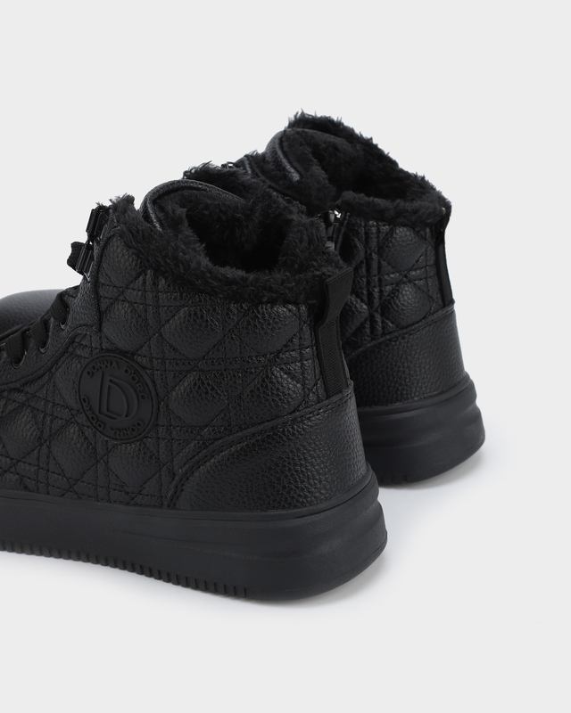 Кеды от итальянского бренда Donna D'Oro с ромбовидной стежкой и подкладкой из искусственного меха. Модель в коричневом и сером цвете выполнена из натуральной замши, остальные оттенки – из натуральной кожи. Функциональные шнурки с люрексом. Молния с внутренней стороны. Рельефная подошва в тон. Опушка выполнена из искусственного меха. Логотип бренда с внешней стороны.