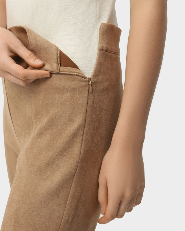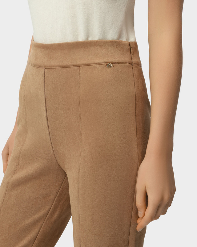 Брюки из коллекции бренда Passegiata выполнены из экозамши, которая обладает хорошими теплоизоляционными свойствами и идеально подходит для холодного времени года. Резинка по поясу обеспечивает комфортную посадку.