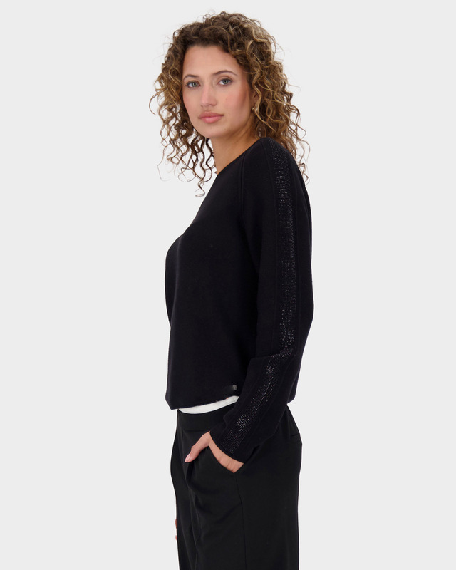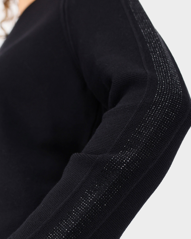Как купить Хлопковый пуловер с декором стразами на рукавах?