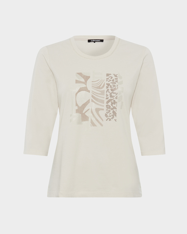 Лонгслив Edda с круглым вырезом горловины и рукавами ¾ из коллекции бренда Olsen. Модель декорирована термоклеевыми стразами и фольговым принтом. Материал из смесового хлопка обеспечивает максимальное удобство. Облегающий крой подчеркивает силуэт. Лонгслив подходит как для повседневной носки, так и для праздничных образов.