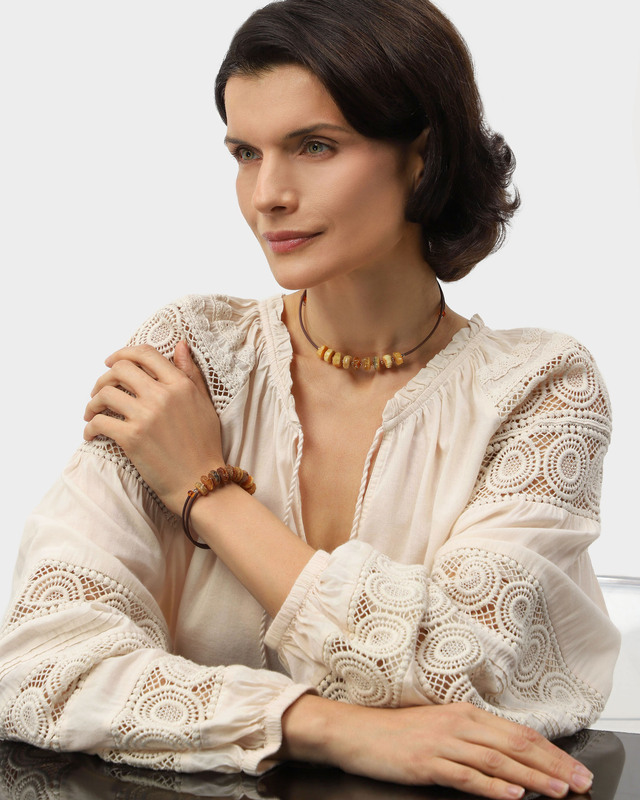 Браслет из коллекции бренда Lovelle выполнен из натурального необработанного янтаря. Благодаря лаконичному дизайну украшение прекрасно дополнит любой повседневный образ. Memory-трос делает изделие универсальным по размеру.