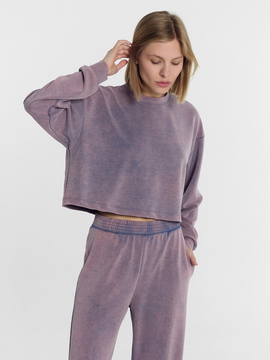 Новинка из коллекции MF Premium - стильный комплект женский из высококачественного материала. Состоит из укороченного джемпера и брюк. Джемпер женский свободного силуэта. Горловина круглой формы. Плечо спущено, пройма углублена. Рукав длинный, по низу рукава - отрезная манжета. Брюки свободного силуэта, с высокой линией талии, по бокам есть функциональные карманы. Пояс с эластичной резинкой, что обеспечивает комфортную посадку по фигуре. Эта модель - одно из уникальных изделий, которые проходят этап дополнительной обработки "варка". Каждая вещь отличается своим особенным и неповторимым рисунком. Легкий и невероятно удобный комплект женский на каждый день, работу, учебу и для прогулок. Широкий размерный ряд. Рекомендуем для создания комфортных образов весной, летом и в демисезон!