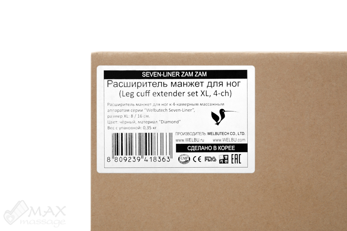 Данные расширители подходят для манжет со стандартной стопой размера XL к четырёхкамерным аппаратам Zam-01. Благодаря двум уровням специальных молний они позволяют увеличить обхват манжеты для ноги по всей длине на 8 или 16 см на выбор.