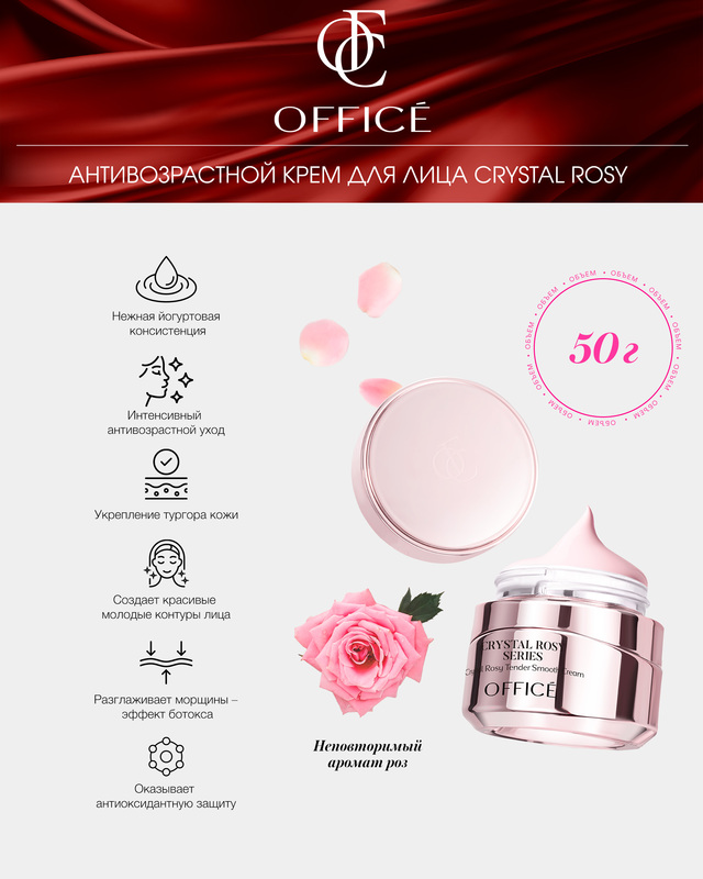 Антивозрастной крем для лица бренда Office оказывает интенсивный антивозрастной уход, разглаживает морщины, повышает эластичность кожи, помогает сформировать красивые контуры лица.