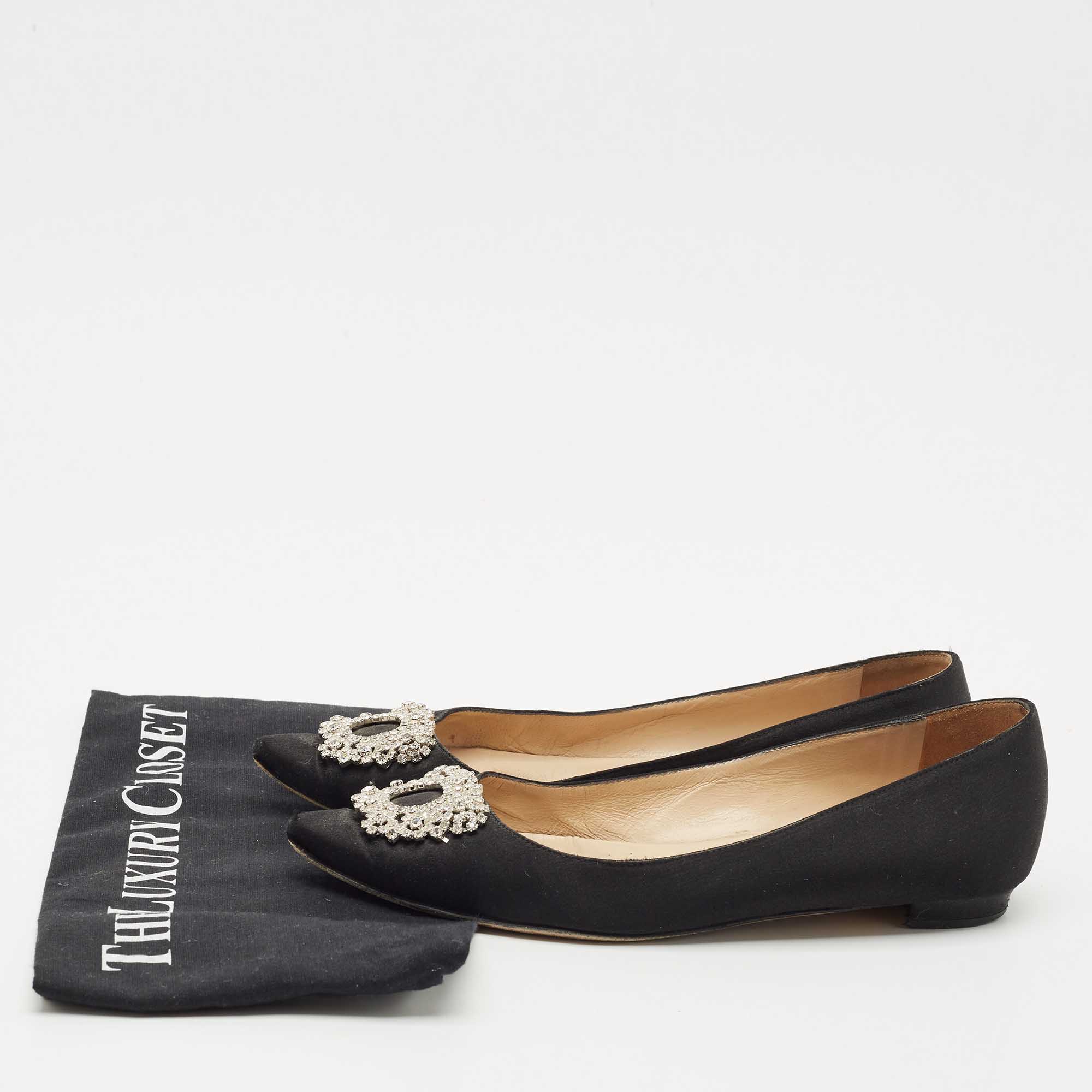 Как купить Manolo Blahnik Black Satin Hangisi Crystal Embellished Ballet Flats Size 37?