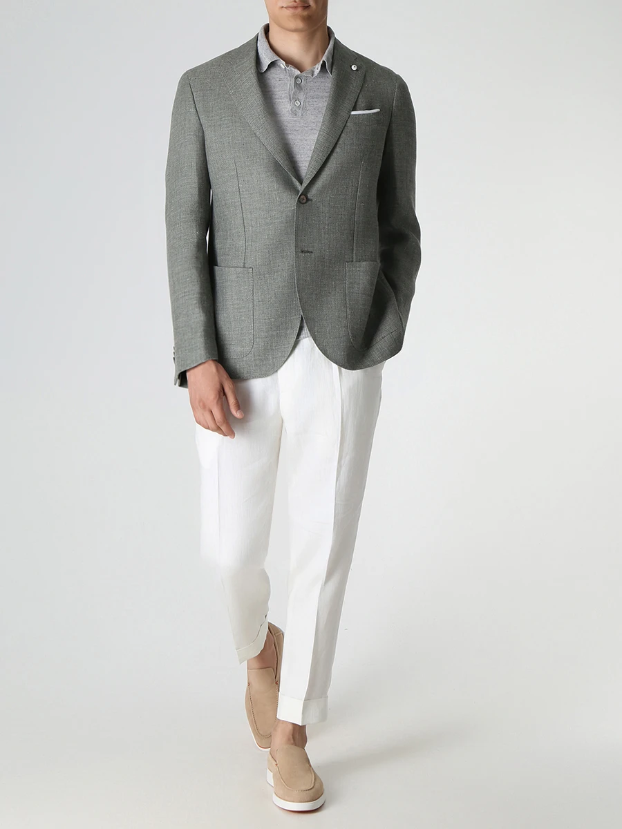 -Серое трикотажное поло из меланжевого хлопка и льна от LUIGI BORRELLI.