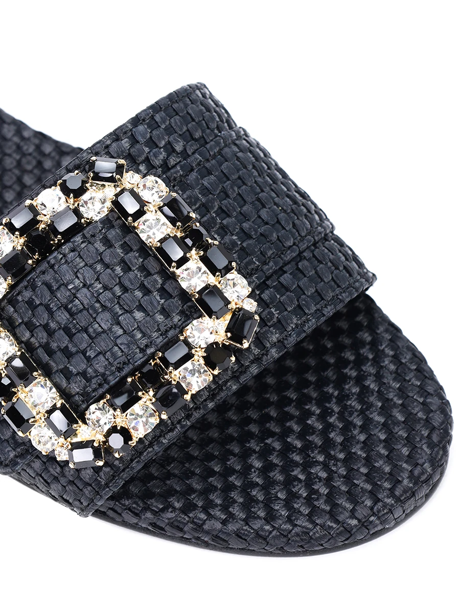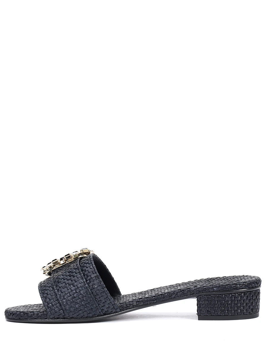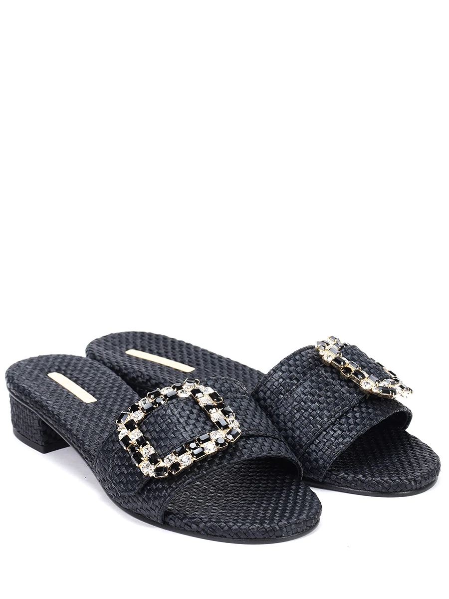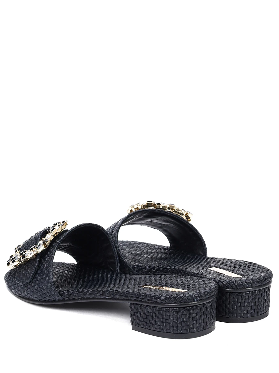 -Черный плетеные шлепанцы из искусственной рафии от EMANUELA CARUSO CAPRI.