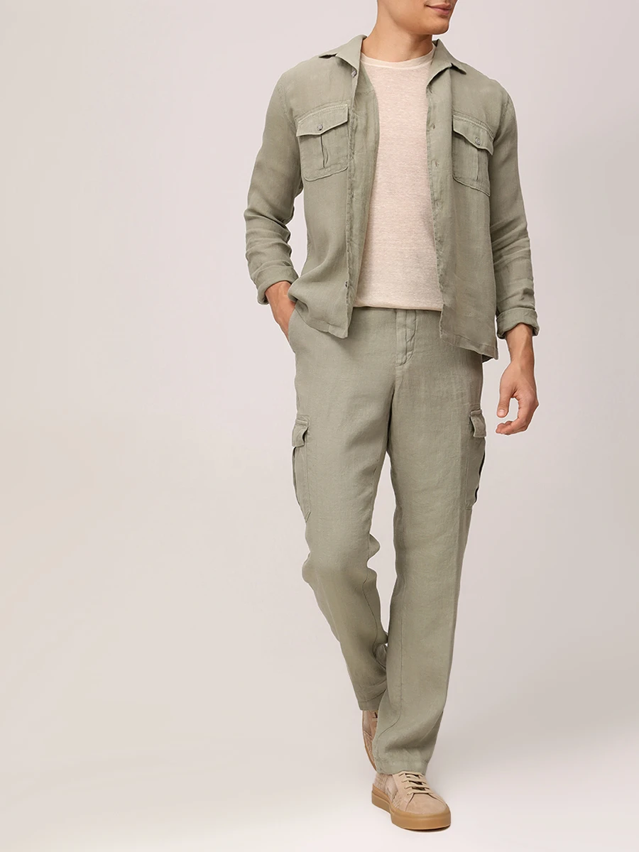 -Зеленая рубашка из легкого дышащего льна от 120% LINO.