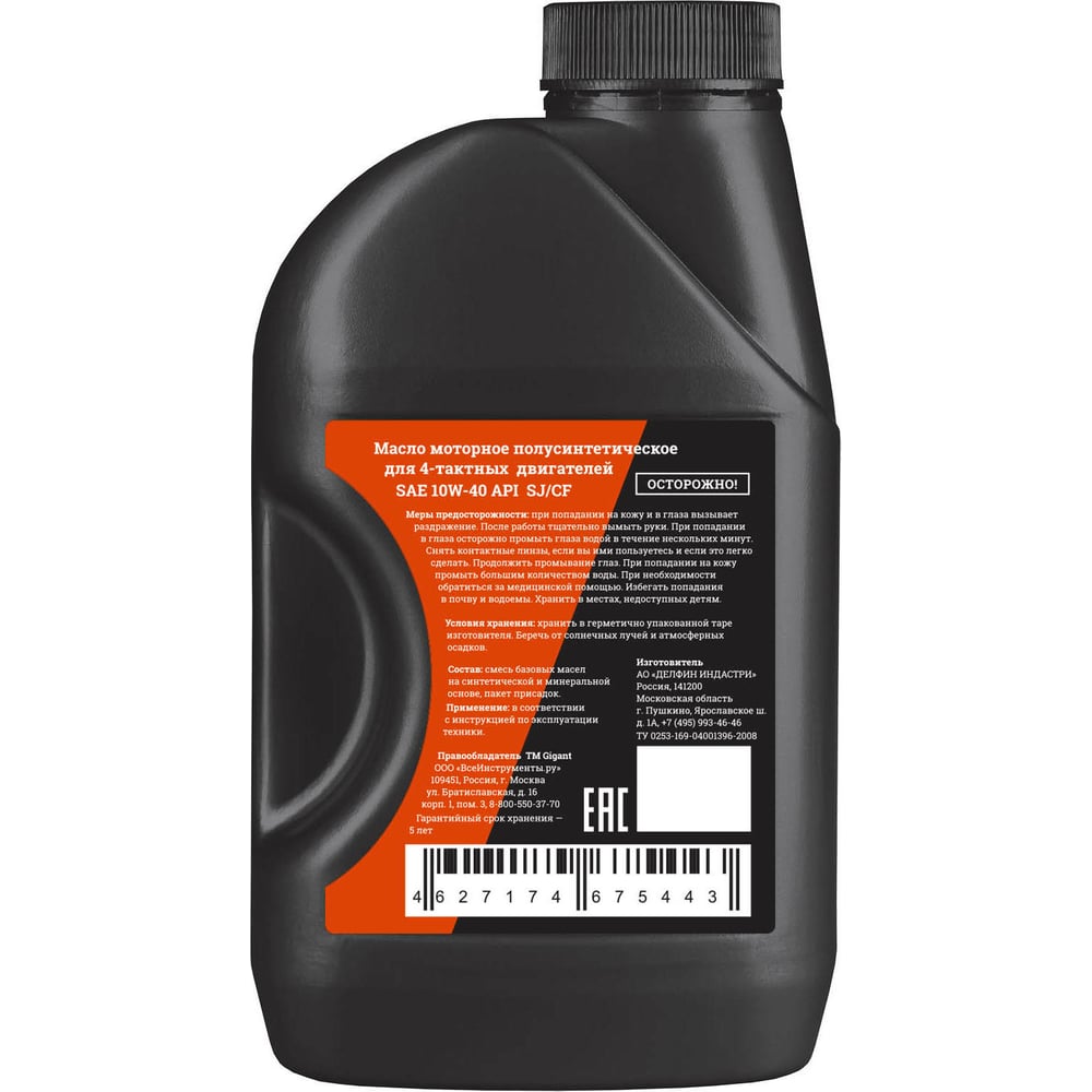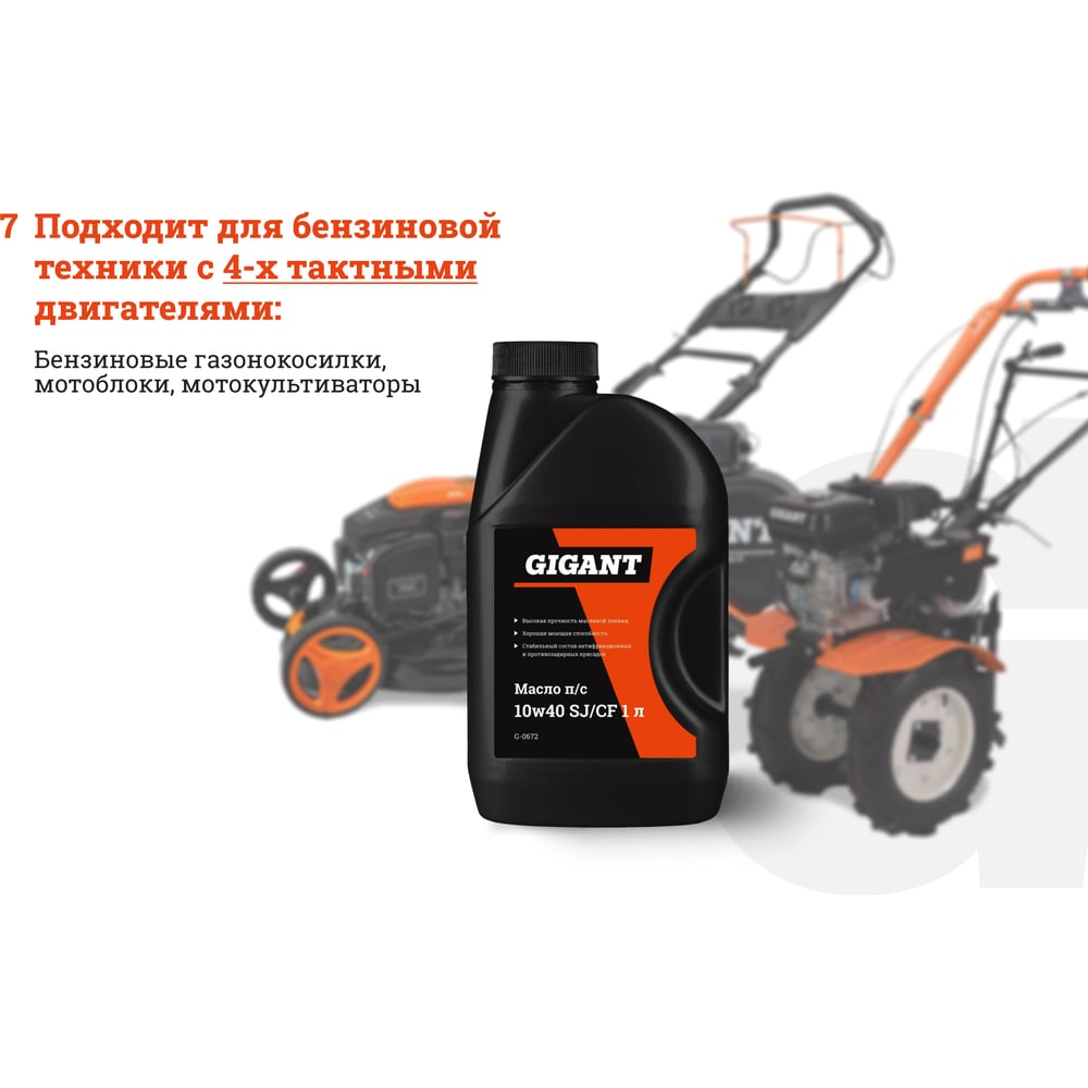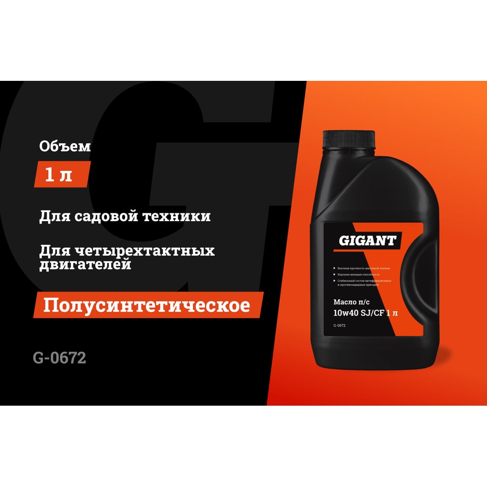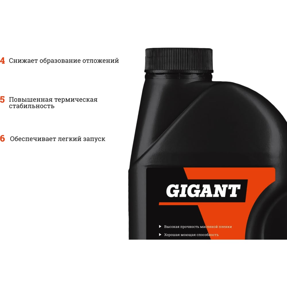Полусинтетическое масло Gigant обеспечивает стабильную работу двигателя путем смазывания поверхностей трущихся деталей. Предназначено для 4-х тактных двигателей, где рекомендован класс SJ/CF. Обеспечивает высокую прочность масляной пленки, хорошую моющую способность. Содержит сбалансированный пакет антифрикционных и противозадирных присадок, что продлевает срок службы двигателя. Масло используется в четырехтактных двигателях триммеров, бензопил, кусторезов, бензобуров, газонокосилок и прочей садовой техники. Gigant – собственная торговая марка компании Все Инструменты.ру, разработанная специально для требовательных мастеров. Продукция представлена профессиональными и бытовыми инструментами, имеет доступную цену и высокое качество. При изготовлении товаров Gigant используется современное оборудование и прочные материалы. Производство осуществляется на современных предприятиях России и Азии. Тестирование товаров осуществляется в два этапа, каждая партия инструментов проходит проверку на соответствие стандартам и заявленным техническим характеристикам. Это является залогом качества и надежности готового продукта. Продукция представлена широкой линейкой инструментов. У нас можно приобрести ручной инструмент, строительный, садовый, сантехнический, климатический, крепежный, автогаражный, а также станки, расходные материалы и многое другое.
