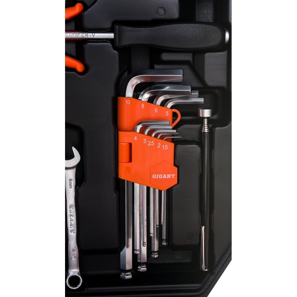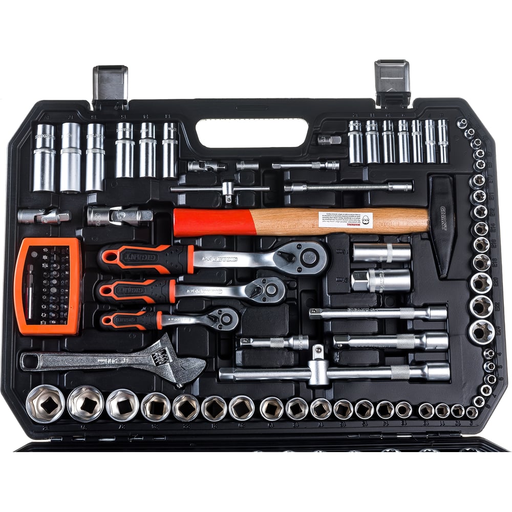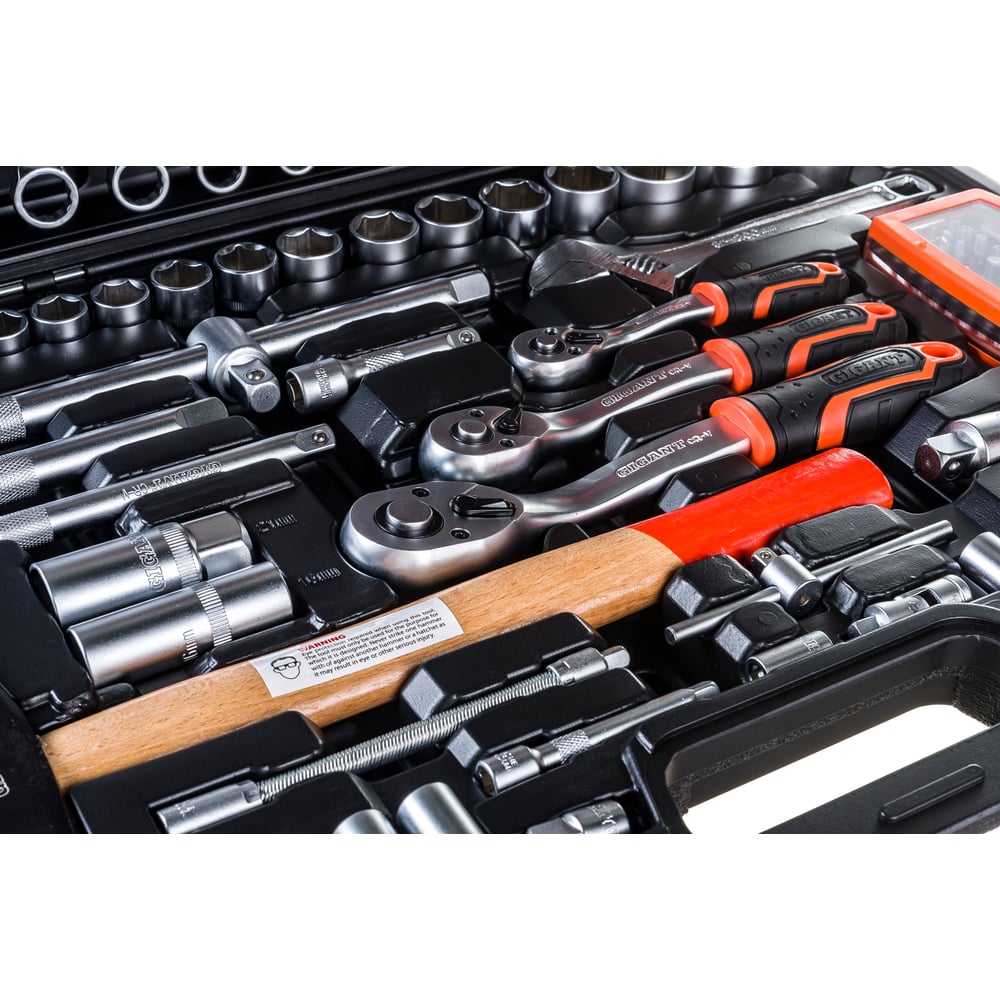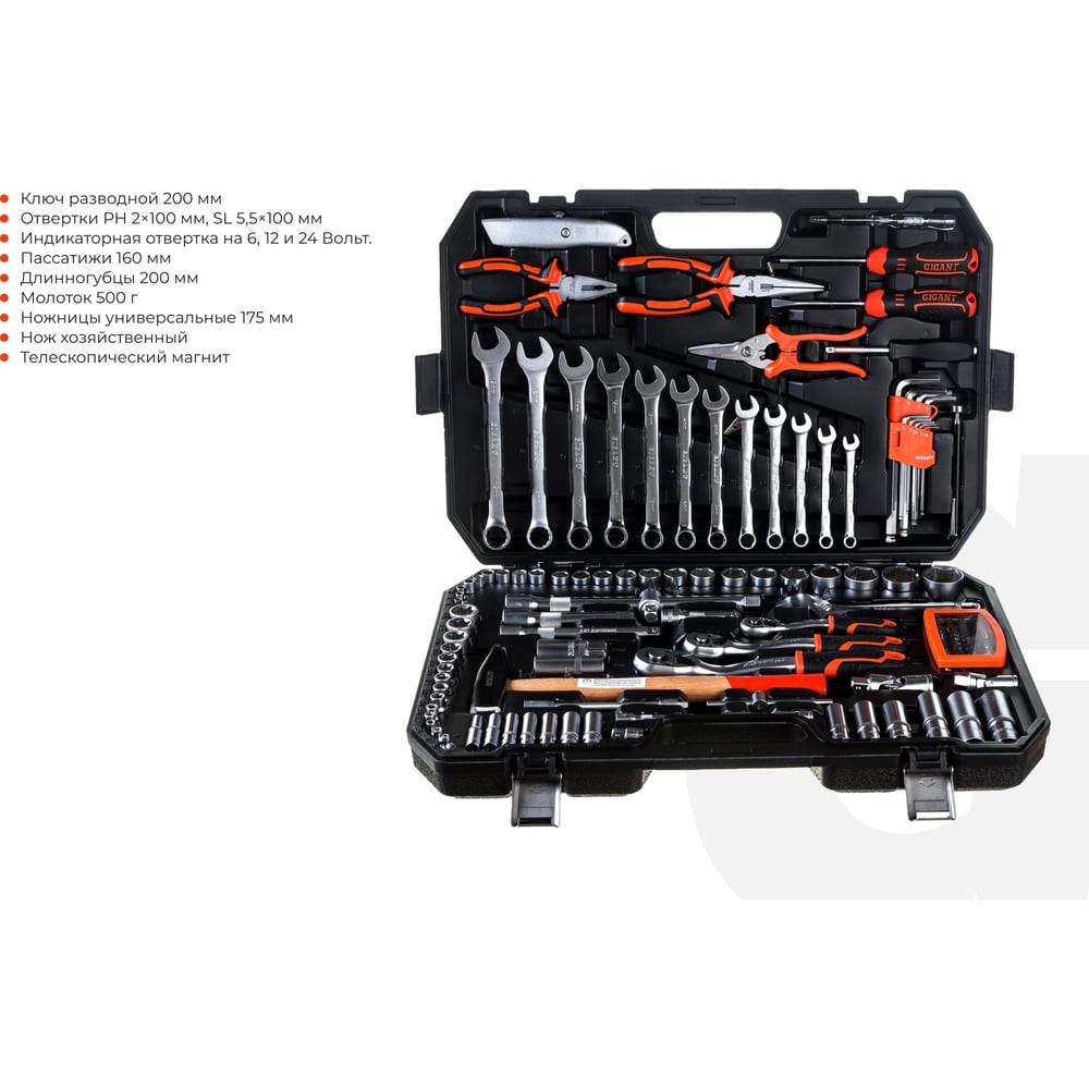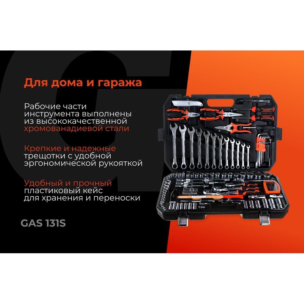 Набор автомобильного инструмента Gigant 131 предмет GAS 131S представляет собой многофункциональный комплект, в котором все инструменты изготовлены из высокопрочной хромованадиевой стали, отличающейся стойкостью к большим нагрузкам и коррозии. Изделия набора применяются для обслуживания и ремонта автомобиля. Кейс для хранения изготовлен из экологичного пластика, оснащен ручкой и защелками для комфортной транспортировки.