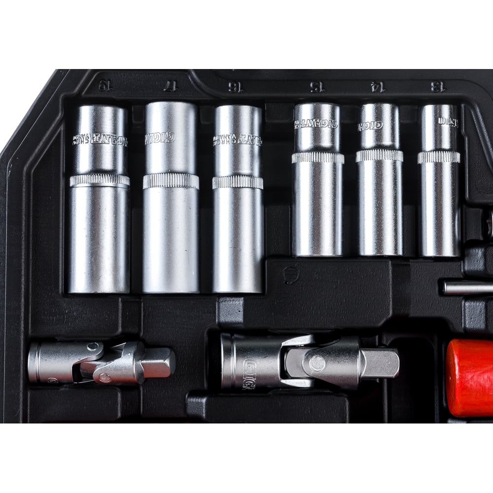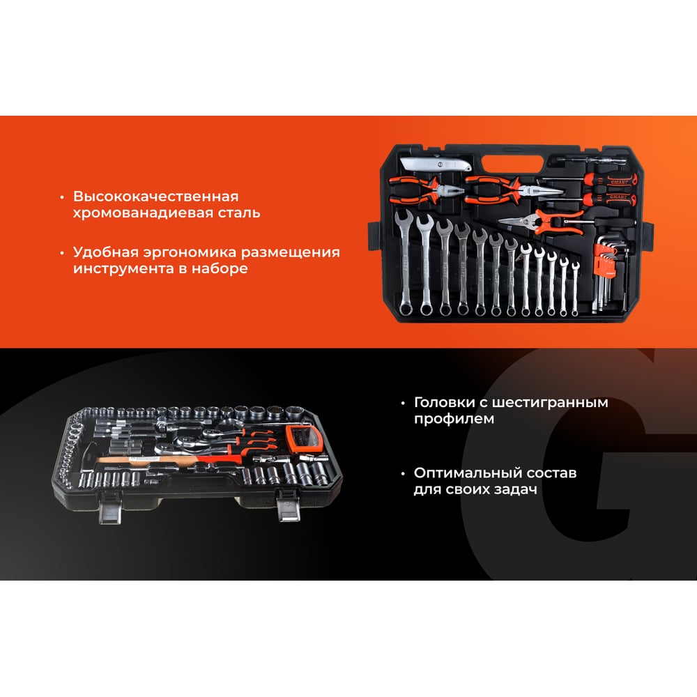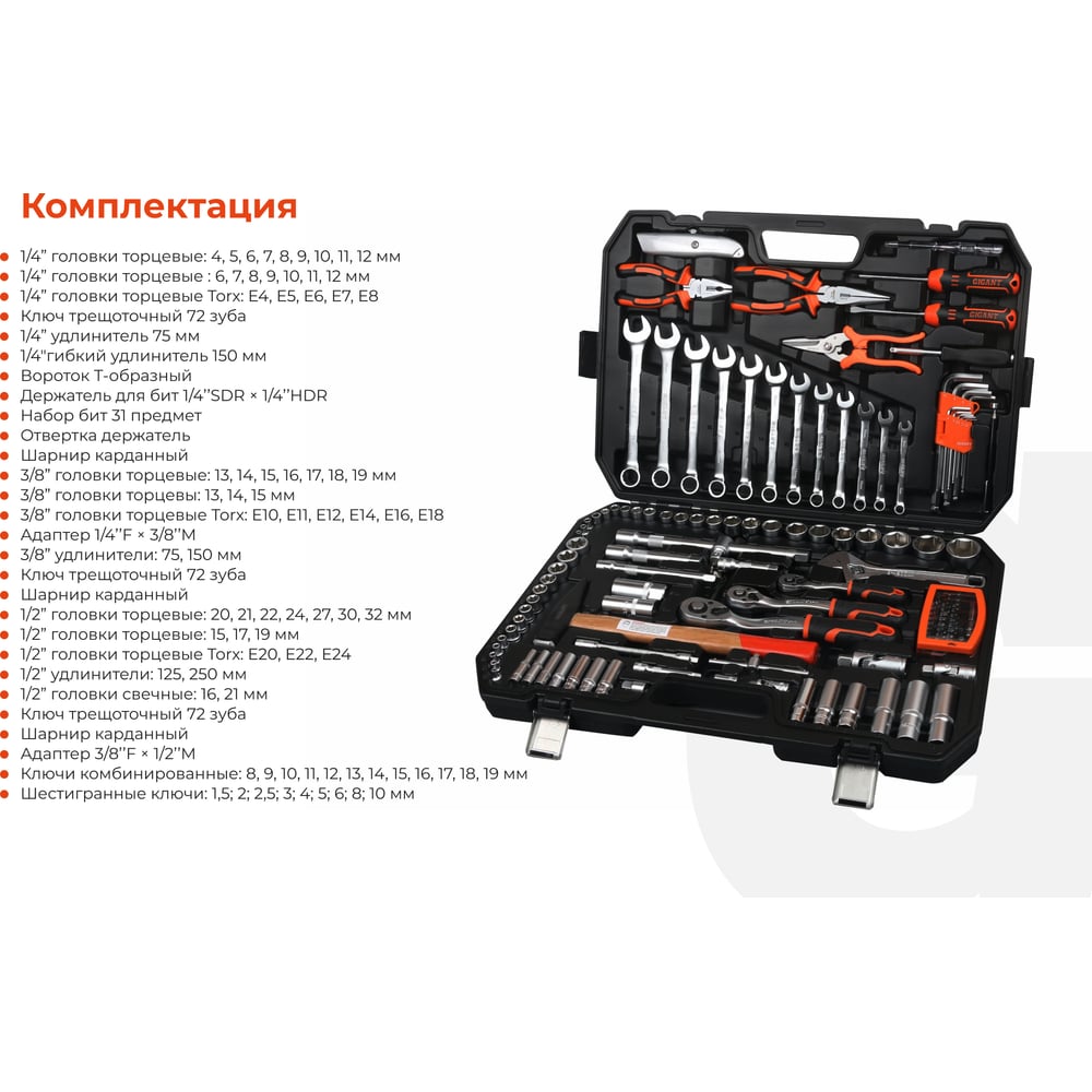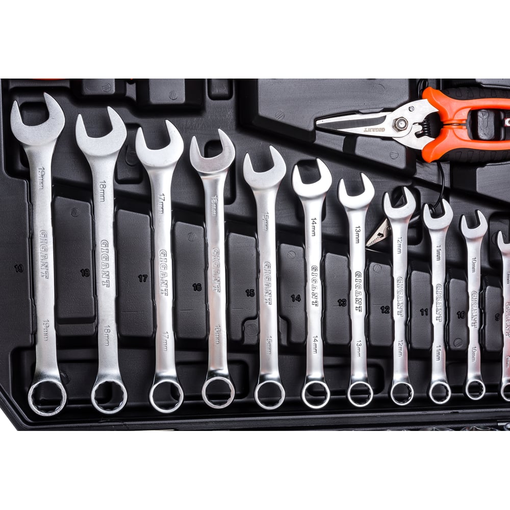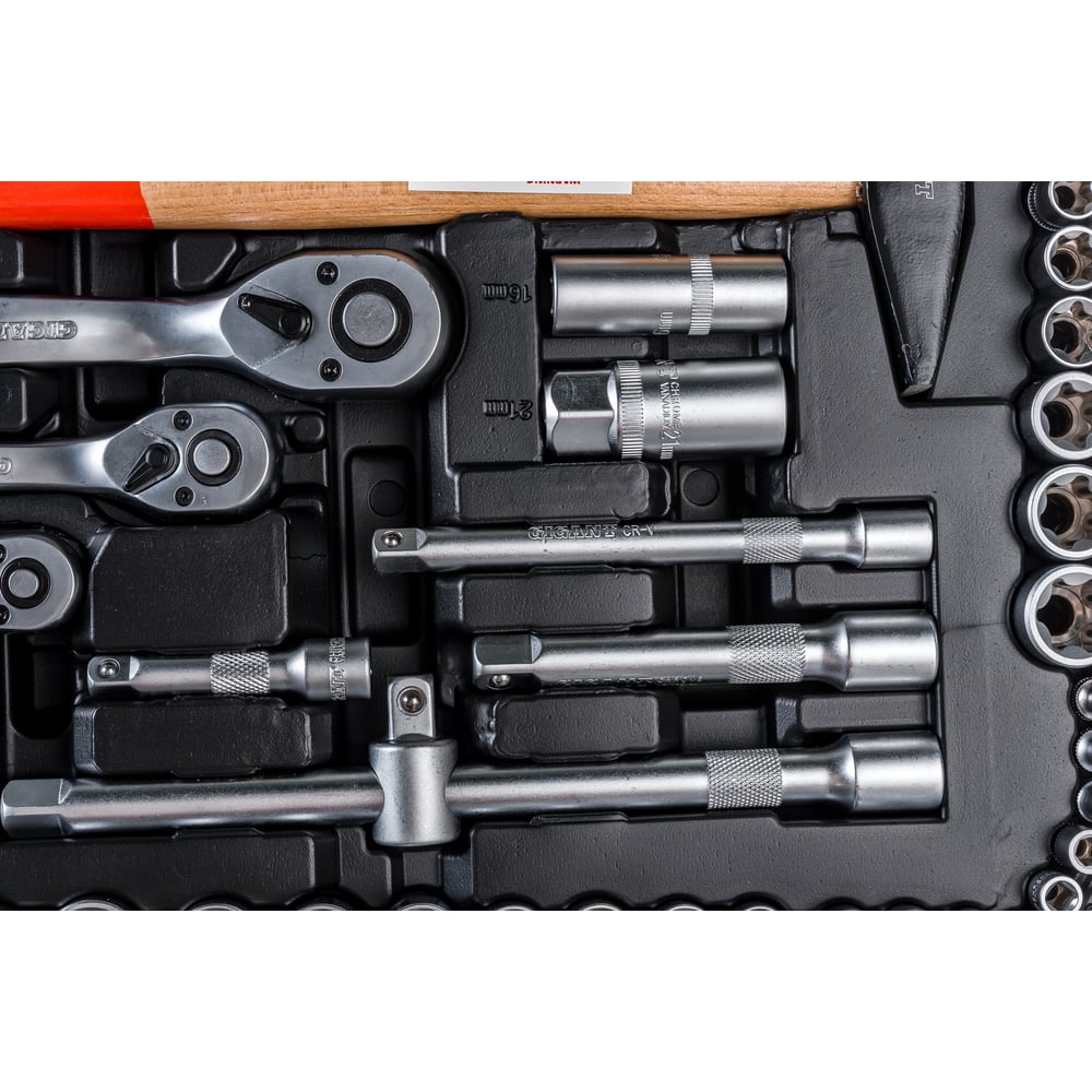 Набор автомобильного инструмента Gigant 131 предмет GAS 131S представляет собой многофункциональный комплект, в котором все инструменты изготовлены из высокопрочной хромованадиевой стали, отличающейся стойкостью к большим нагрузкам и коррозии. Изделия набора применяются для обслуживания и ремонта автомобиля. Кейс для хранения изготовлен из экологичного пластика, оснащен ручкой и защелками для комфортной транспортировки.