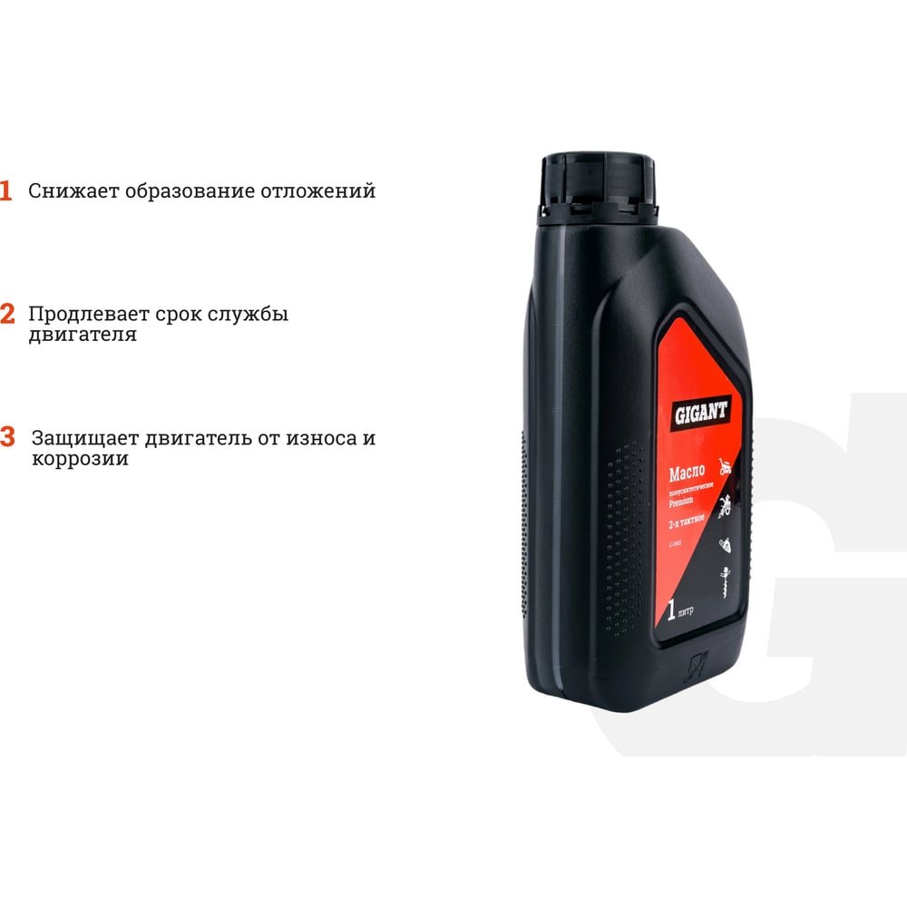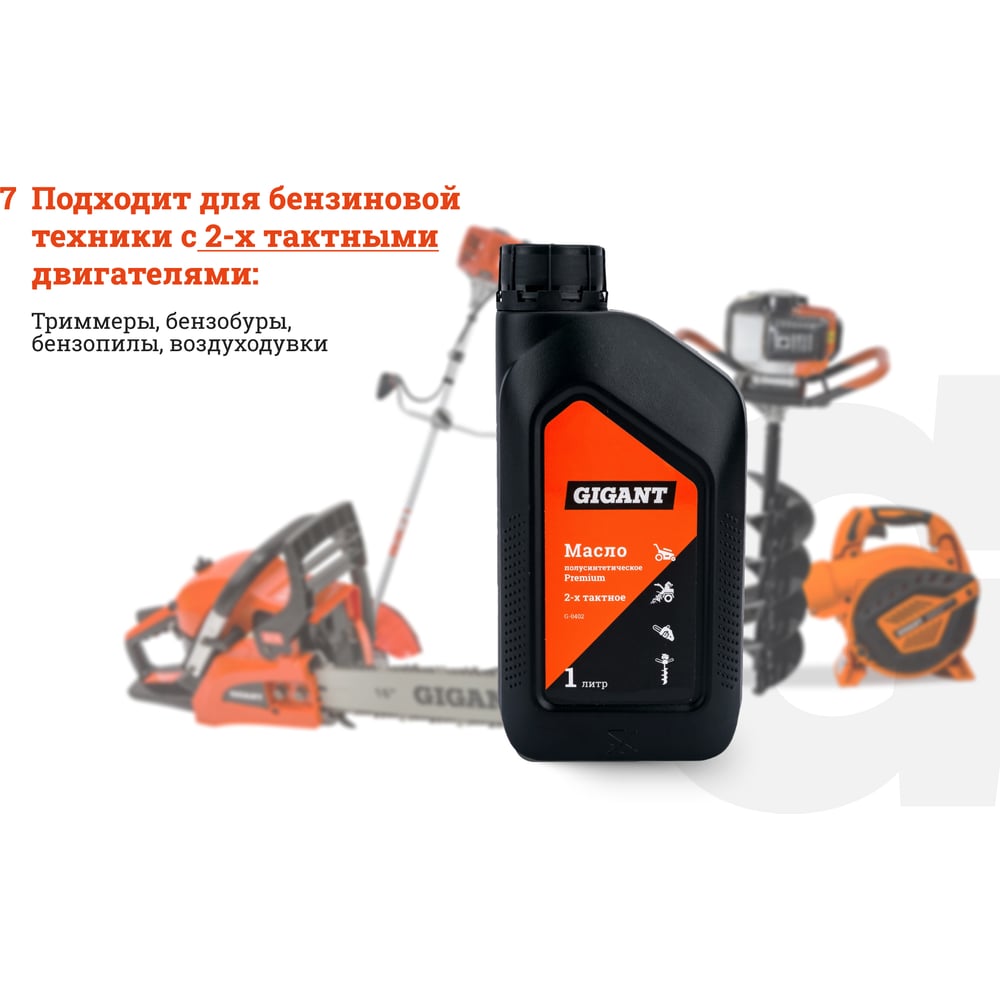 Полусинтетическое масло Gigant изготовлено с использованием высокоочищенных базовых масел и специального беззольного пакета присадок, что гарантирует высокую степень сгорания и значительное снижение высокотемпературных отложений в двигателе. Маркировка по API - TC. Масло содержит противопенные компоненты и имеет улучшенные пусковые свойства при низких температурах. Обеспечивает продление срока службы оборудования и превосходную смазку поверхностей трущихся деталей двигателя при повышенных нагрузках, образуя надежную защитную пленку. Масло является всесезонным, соответствует классу FB и отвечает высоким требованиям к смазывающей способности, моющим свойствам, дымности и закоксовыванию выпускных каналов. Масло предназначено для двухтактных двигателей триммеров, бензопил, кусторезов, бензобуров, газонокосилок и прочей садовой техники. Рекомендации по применению, пропорции: 1:50. Внимание! Соблюдайте пропорции смешивания масла с топливом строго в соответствии с рекомендациями производителей техники. Gigant – собственная торговая марка компании Все Инструменты.ру, разработанная специально для требовательных мастеров. Продукция представлена профессиональными и бытовыми инструментами, имеет доступную цену и высокое качество. При изготовлении товаров Gigant используется современное оборудование и прочные материалы. Производство осуществляется на современных предприятиях России и Азии. Тестирование товаров осуществляется в два этапа, каждая партия инструментов проходит проверку на соответствие стандартам и заявленным техническим характеристикам. Это является залогом качества и надежности готового продукта. Продукция представлена широкой линейкой инструментов. У нас можно приобрести ручной инструмент, строительный, садовый, сантехнический, климатический, крепежный, автогаражный, а также станки, расходные материалы и многое другое. Данная позиция поставляется взамен на масло полусинтетическое Premium 2-х тактное (1 л) Inforce 11-04-02.